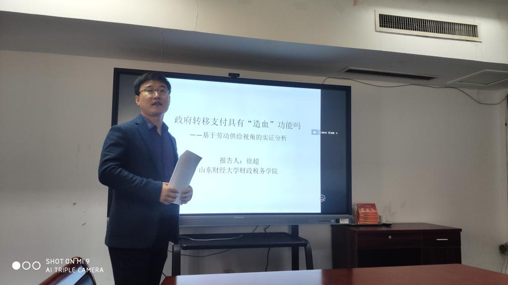 10月21日下午2点到3点半,学院816会议室举行了本学年第7期工作论文研讨会,徐超教授汇报了他的工作论文《政府转移支付具有“造血”功能吗?——基于劳动供给视角的实证分析》。